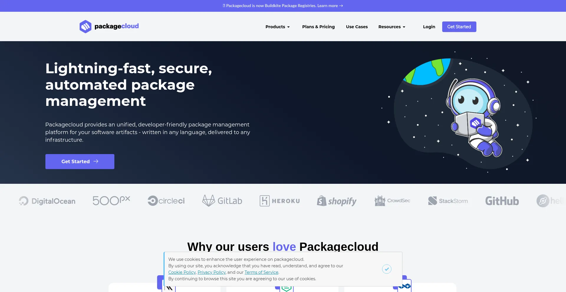 该网站实现符合GDPR或CCPA等隐私法规的cookie同意机制。这表明 packagecloud.io 遵守数据保护标准并为用户提供对个人数据收集实践的控制。