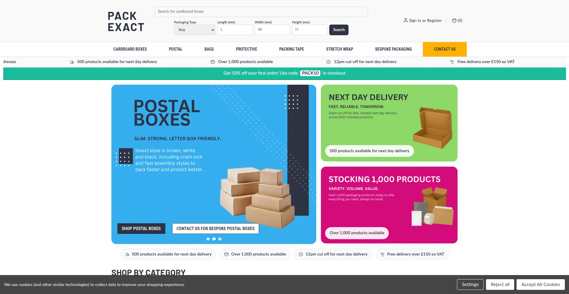 分析表明 packexact.com 作为电子商务平台运营,促进商品或服务的在线交易。该网站实现了购物车功能、支付处理系统和产品目录功能,这些是商业零售运营的典型特征。