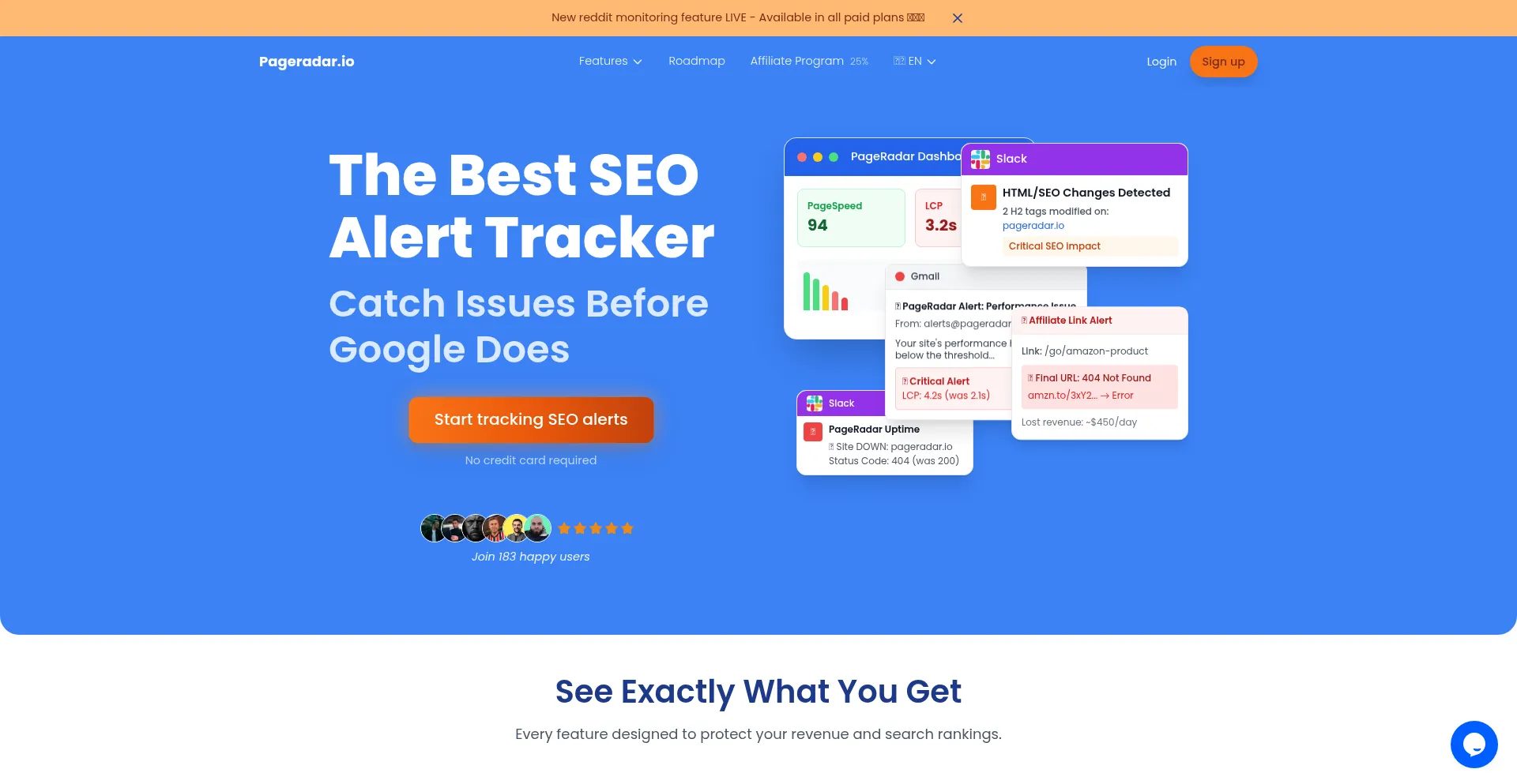The best SEO alert tracker tool - Catch issues before Google | Pageradar.io
