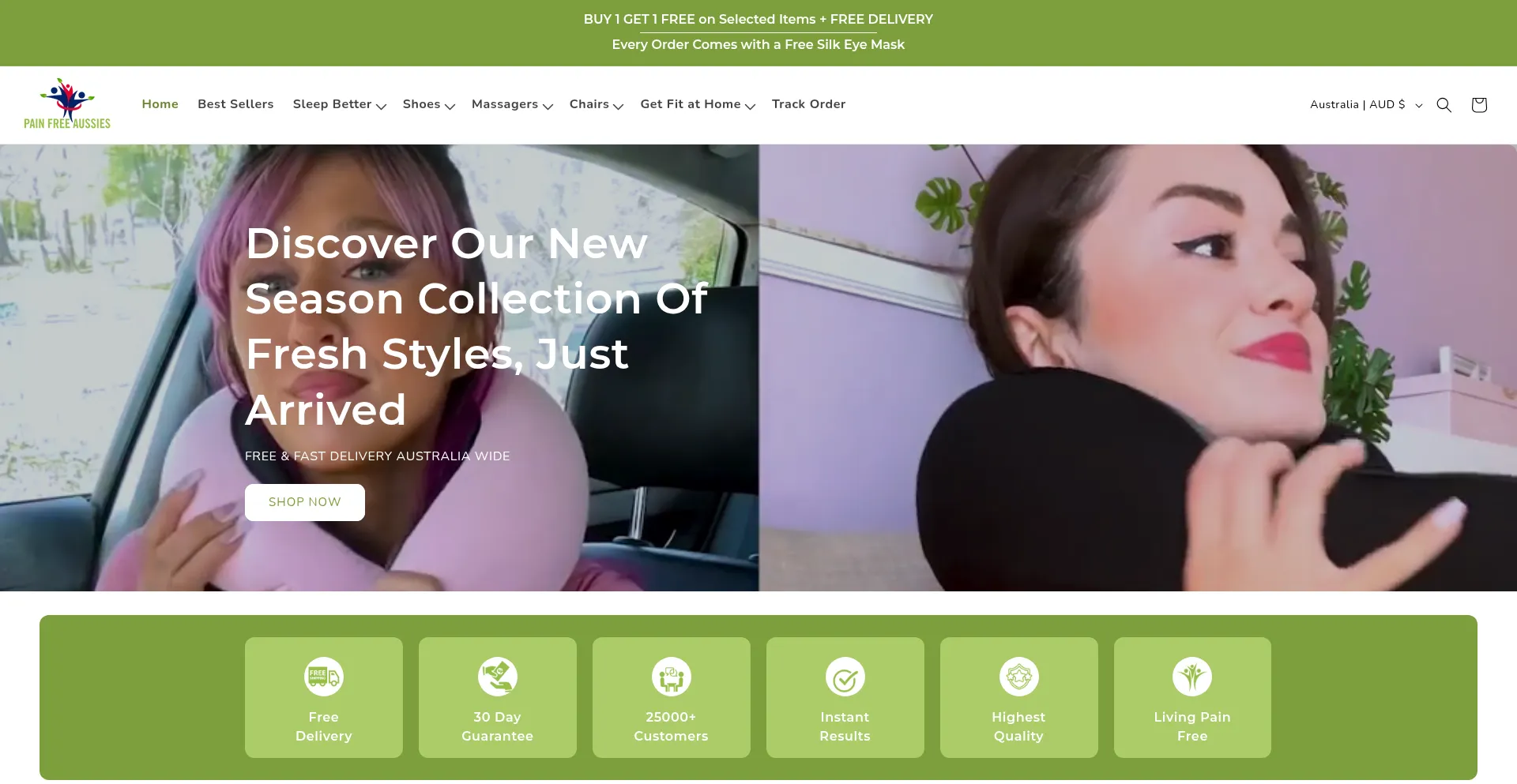该网站利用流行产品名称和品牌来吸引流量并产生用户兴趣。这些产品可能通过促销活动或折扣策略提供,旨在增加 painfreeaussies.com.au 的访客参与度和转化率。