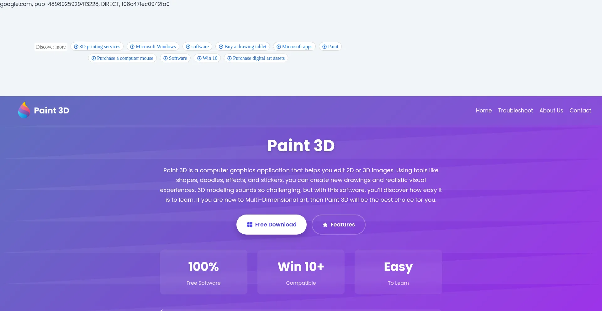 paint-3d.com 使用 Google Tag Manager 在其网站上添加和更新追踪代码(标签)。