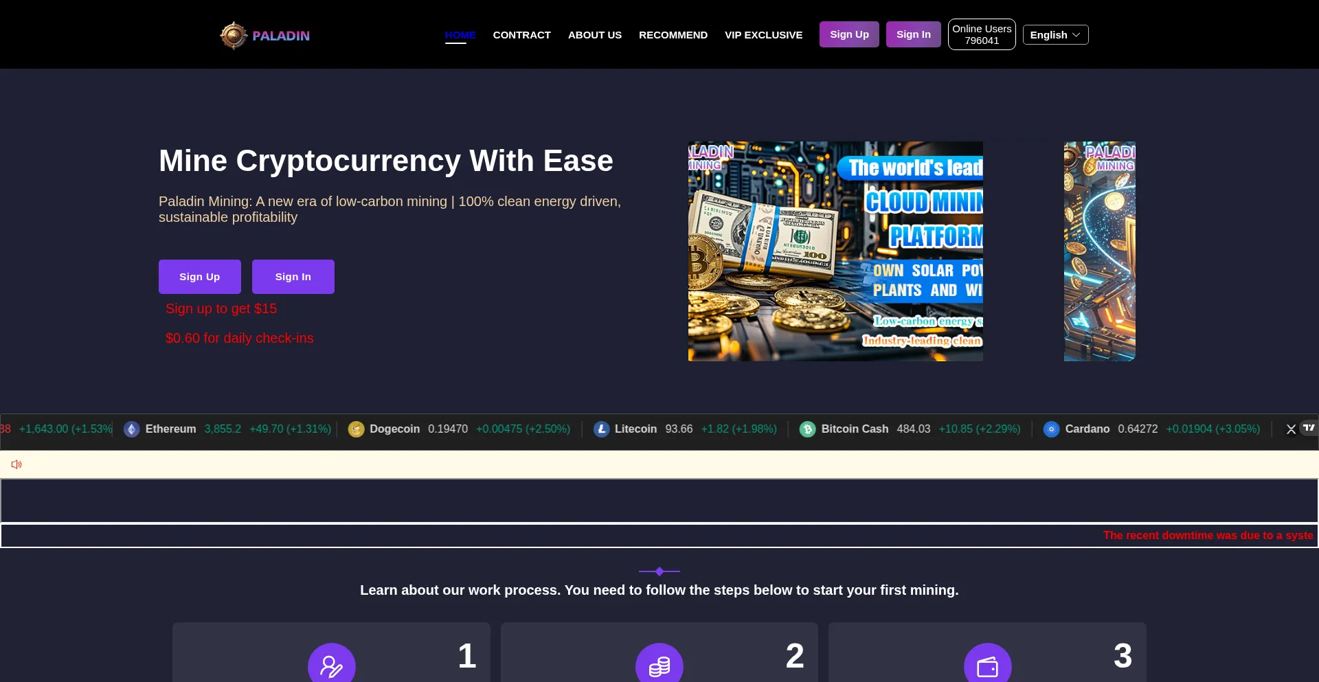 网站 paladinmining.net 可能提供云挖矿服务或加密货币挖矿投资。一些平台提供合法的挖矿租赁服务,而其他平台可能使用虚假的挖矿仪表板来显示无法提取的虚拟收益。