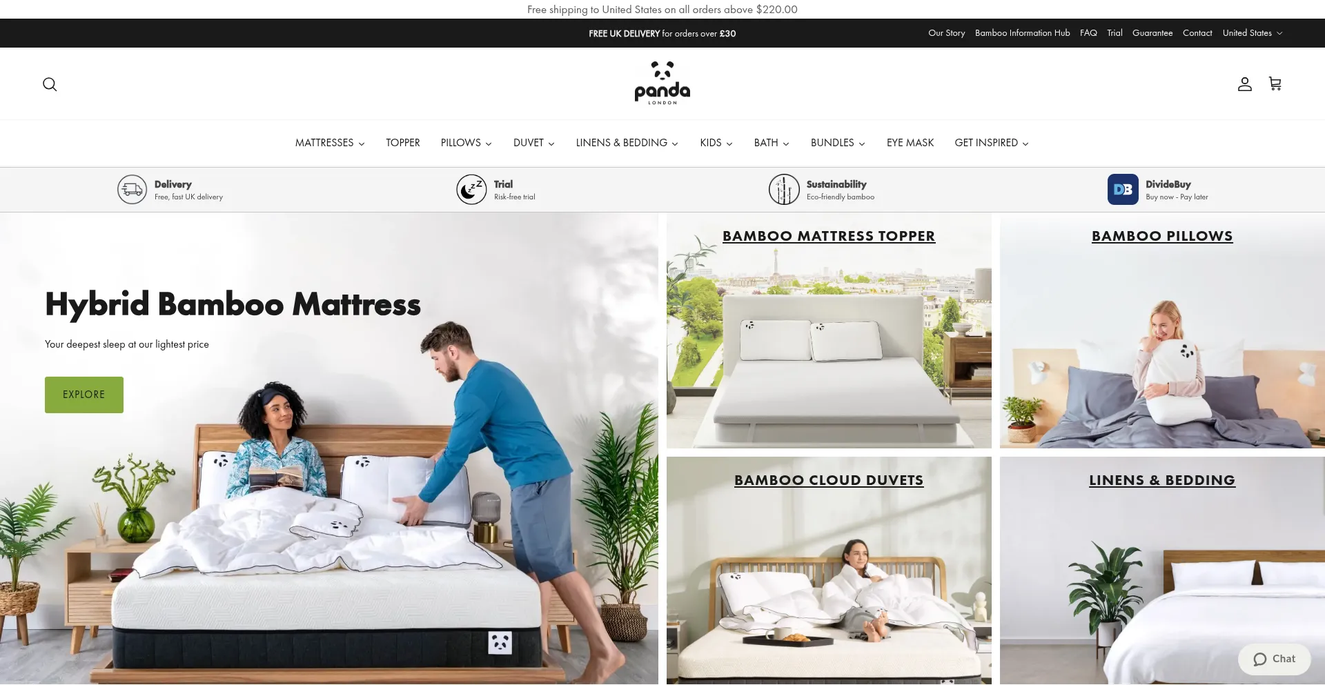 Shop online for award-winning bamboo mattress toppers, pillows, bedding and UK-made mattresses at Panda London. 100-Night-Trial | Free UK Delivery and Recycling