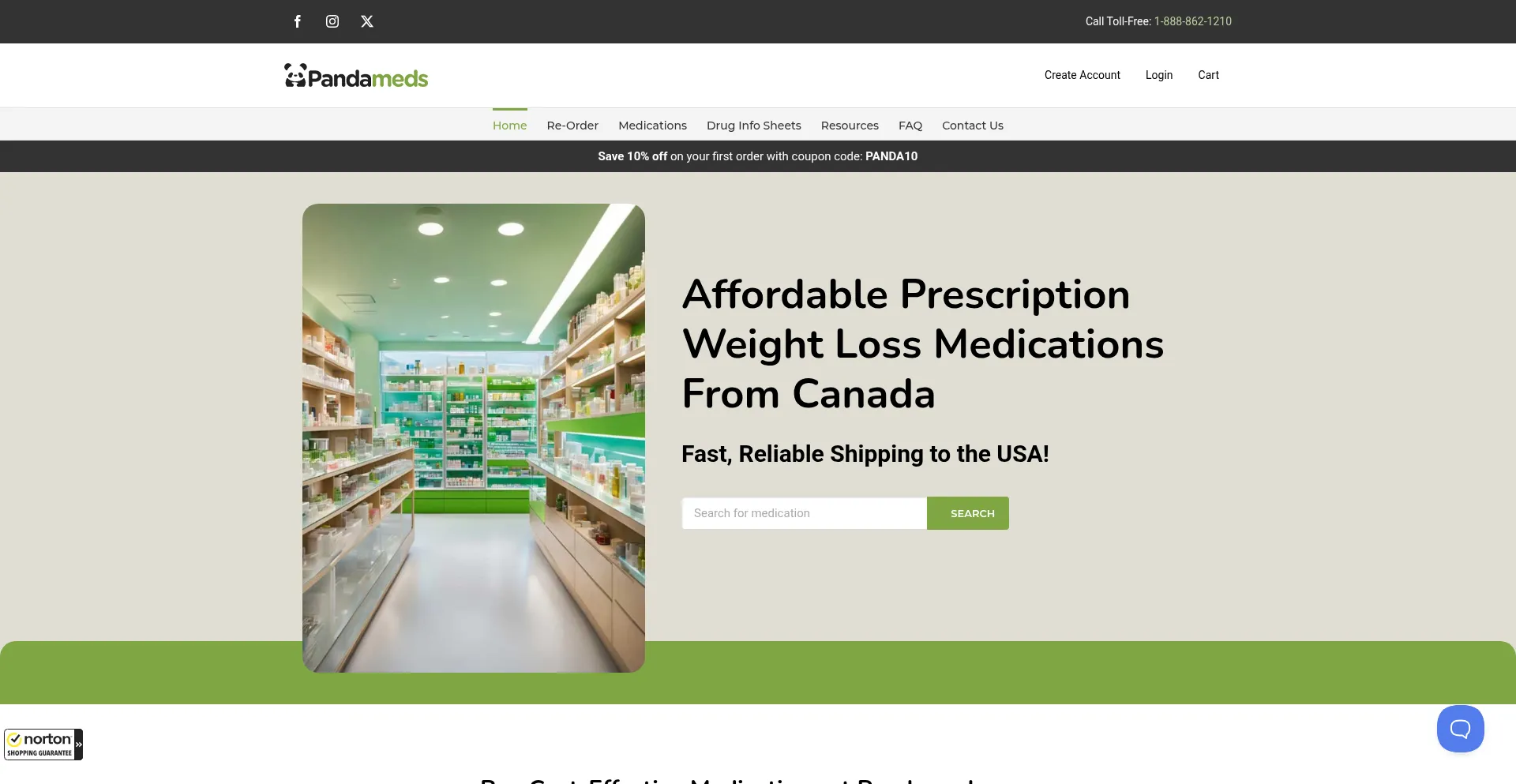 网站上存在社交媒体链接表明 pandameds.com 在社交媒体上维护官方账户,这是可信度和参与度的积极信号。