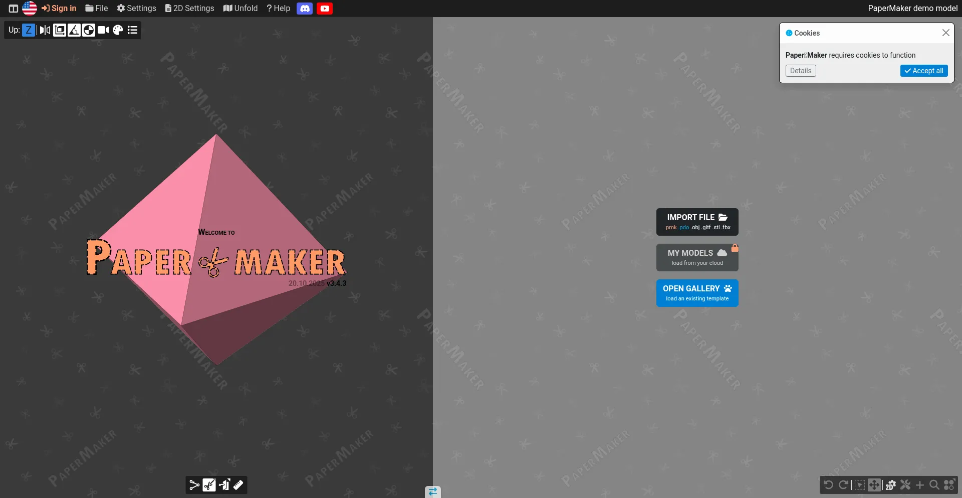 Online unfolding software, turn 3d models and PDO into 2D templates. Download PDF / SVG papercraft on our public gallery.