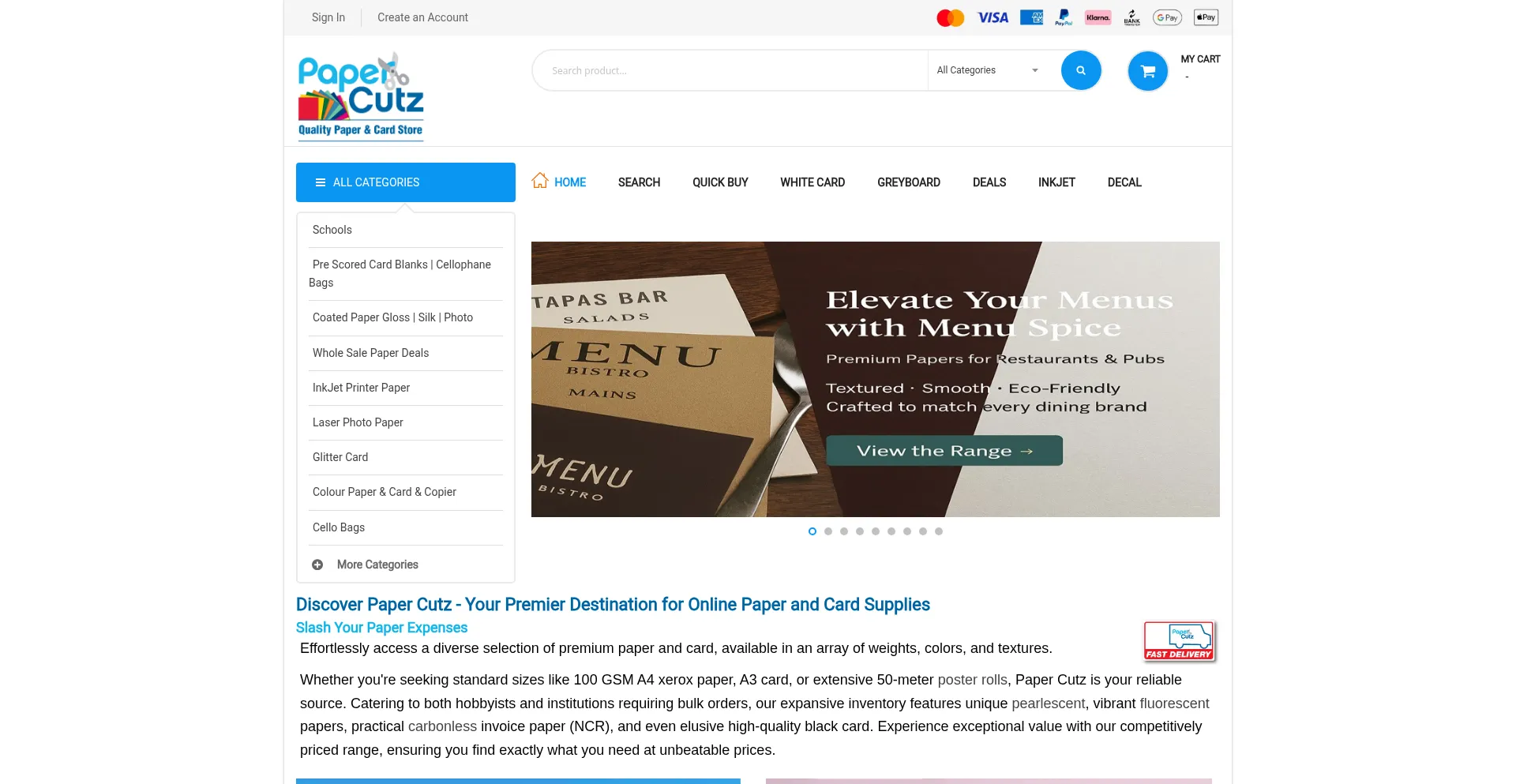 Paper Cutz offer a huge range of top-quality paper and card, including A4 and A3 paper, black card, display papers and high performance laser paper.