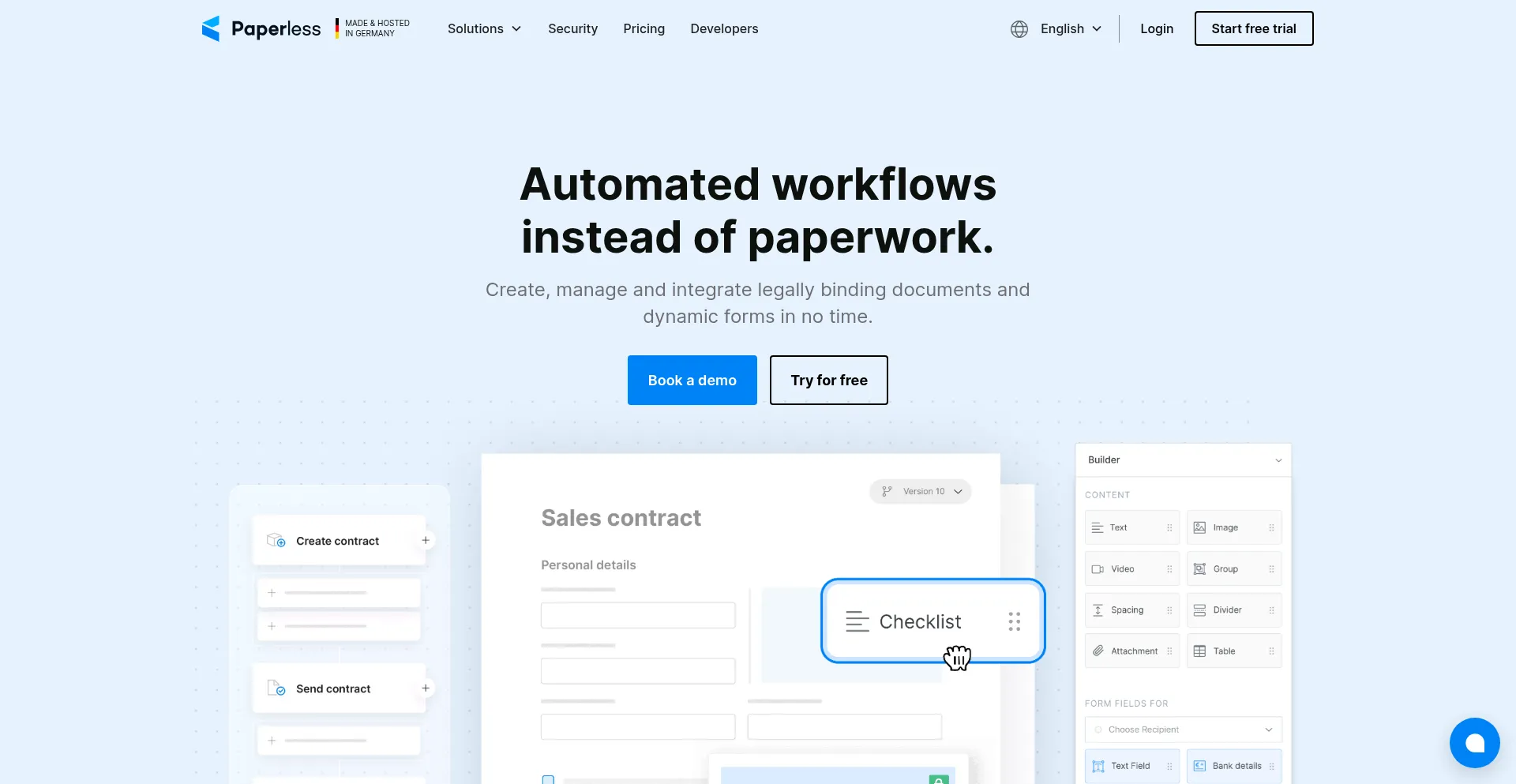 该网站实现数据收集表单,请求个人信息,包括姓名、电子邮件地址、电话号码或其他敏感详细信息。用户应验证 paperless.io 的合法性并在提交个人数据前查看隐私政策。