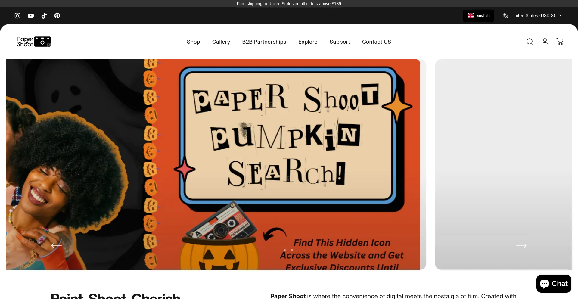网站上存在社交媒体链接表明 papershoot.com 在社交媒体上维护官方账户,这是可信度和参与度的积极信号。