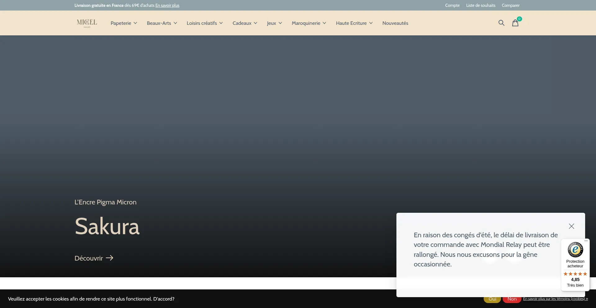 网站 papeteriemichel.com 被配置为一个带有移动应用功能的网络应用。用户可以直接将该网站安装到设备的桌面上,以快速访问并享受类似移动应用的体验。