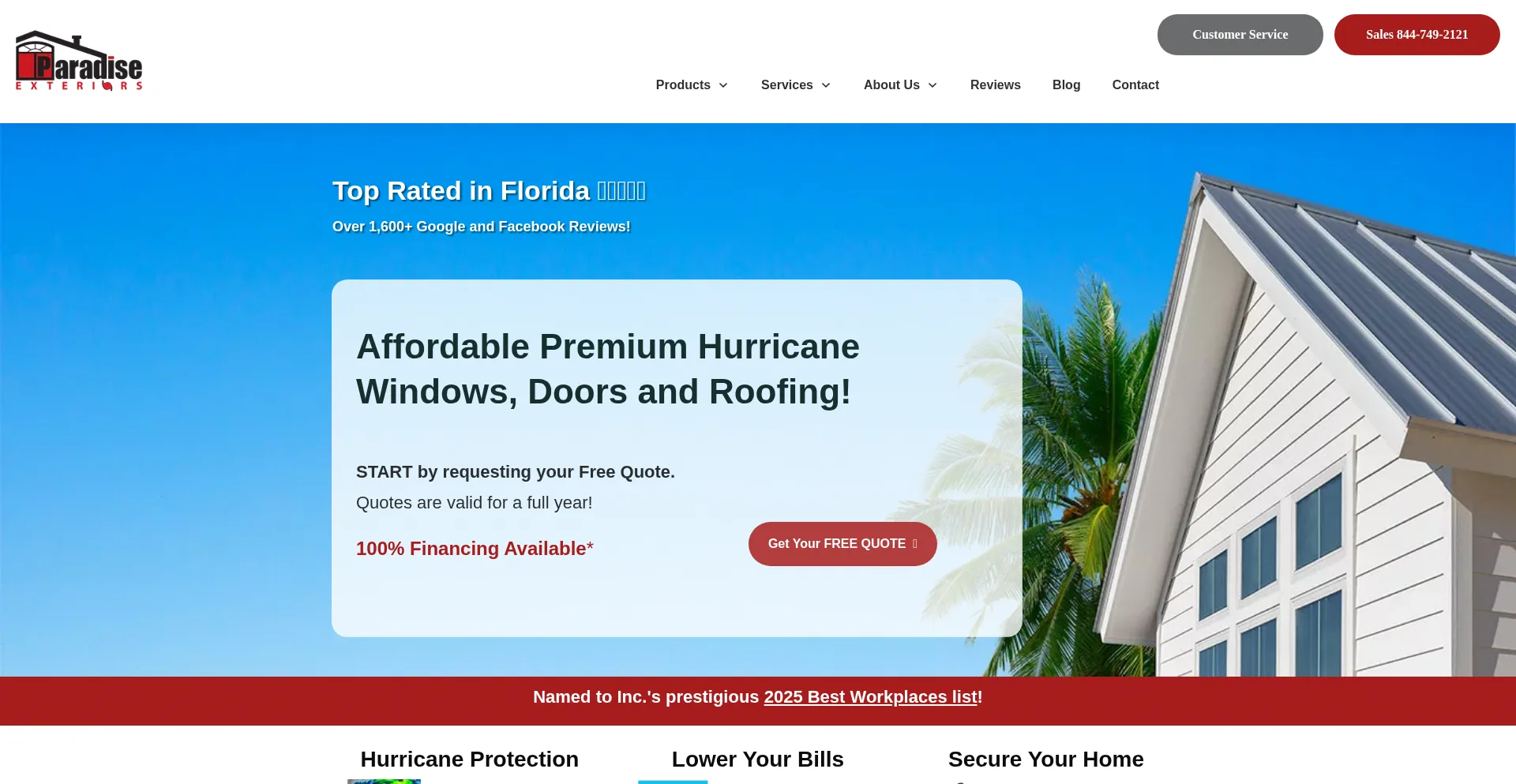 Impact-rated hurricane windows doors & roofing | Paradise Exteriors