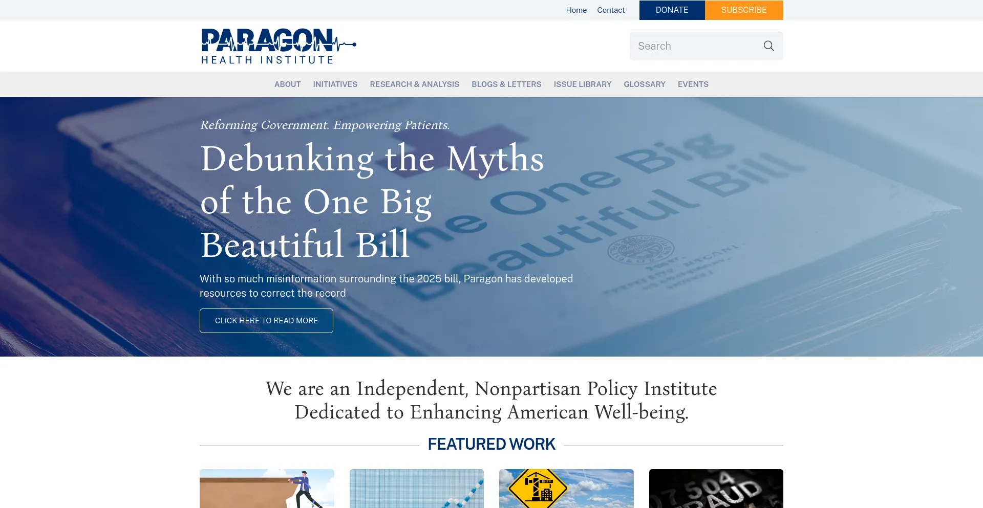 Paragon Health Institute provides health care research as well as market-based policy proposals for improved outcomes in the public and private sectors.