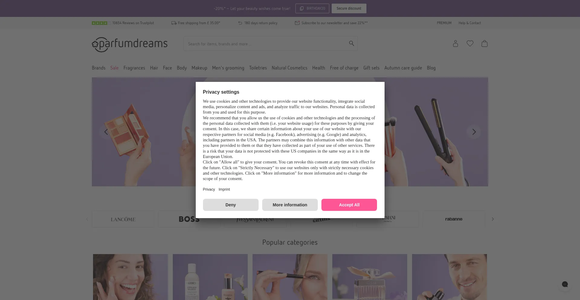 该网站实现符合GDPR或CCPA等隐私法规的cookie同意机制。这表明 parfumdreams.co.uk 遵守数据保护标准并为用户提供对个人数据收集实践的控制。
