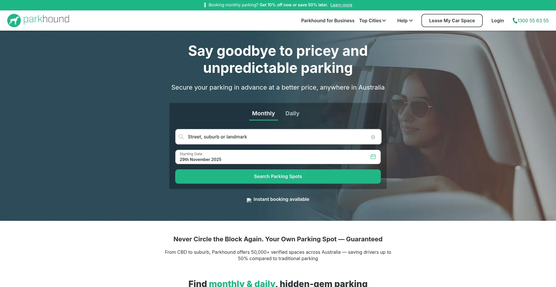 Search, find and lease thousands of affordable parking spaces from local residents & businesses with Parkhound across Australia.