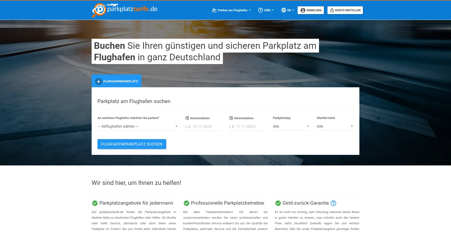 Parkplatztarife.de: Parken am Flughafen oder Hafen