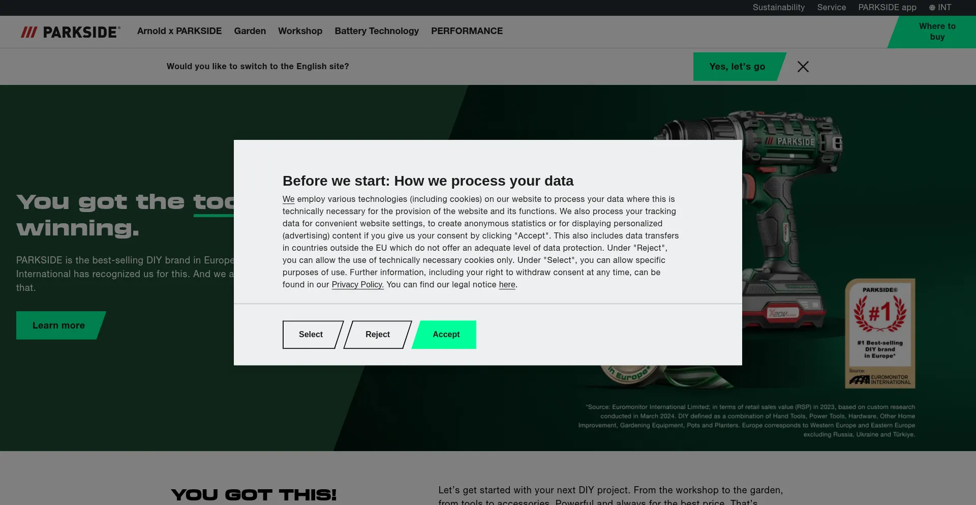 该网站实现符合GDPR或CCPA等隐私法规的cookie同意机制。这表明 parkside-diy.com 遵守数据保护标准并为用户提供对个人数据收集实践的控制。