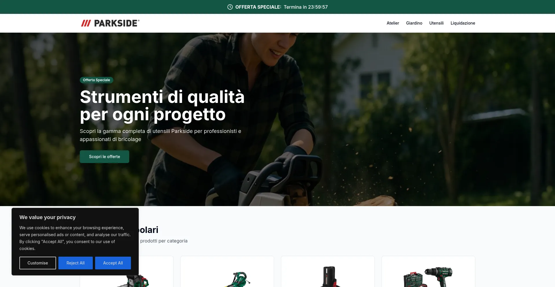 该网站实现符合GDPR或CCPA等隐私法规的cookie同意机制。这表明 parkside-italy.store 遵守数据保护标准并为用户提供对个人数据收集实践的控制。