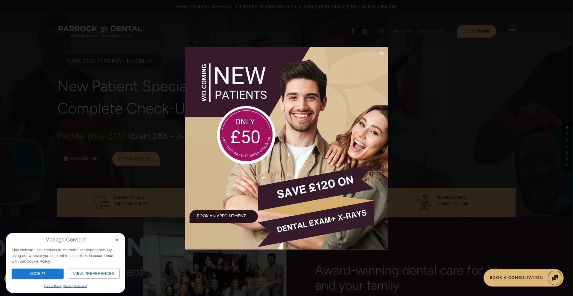 该网站实现符合GDPR或CCPA等隐私法规的cookie同意机制。这表明 parrockdental.co.uk 遵守数据保护标准并为用户提供对个人数据收集实践的控制。