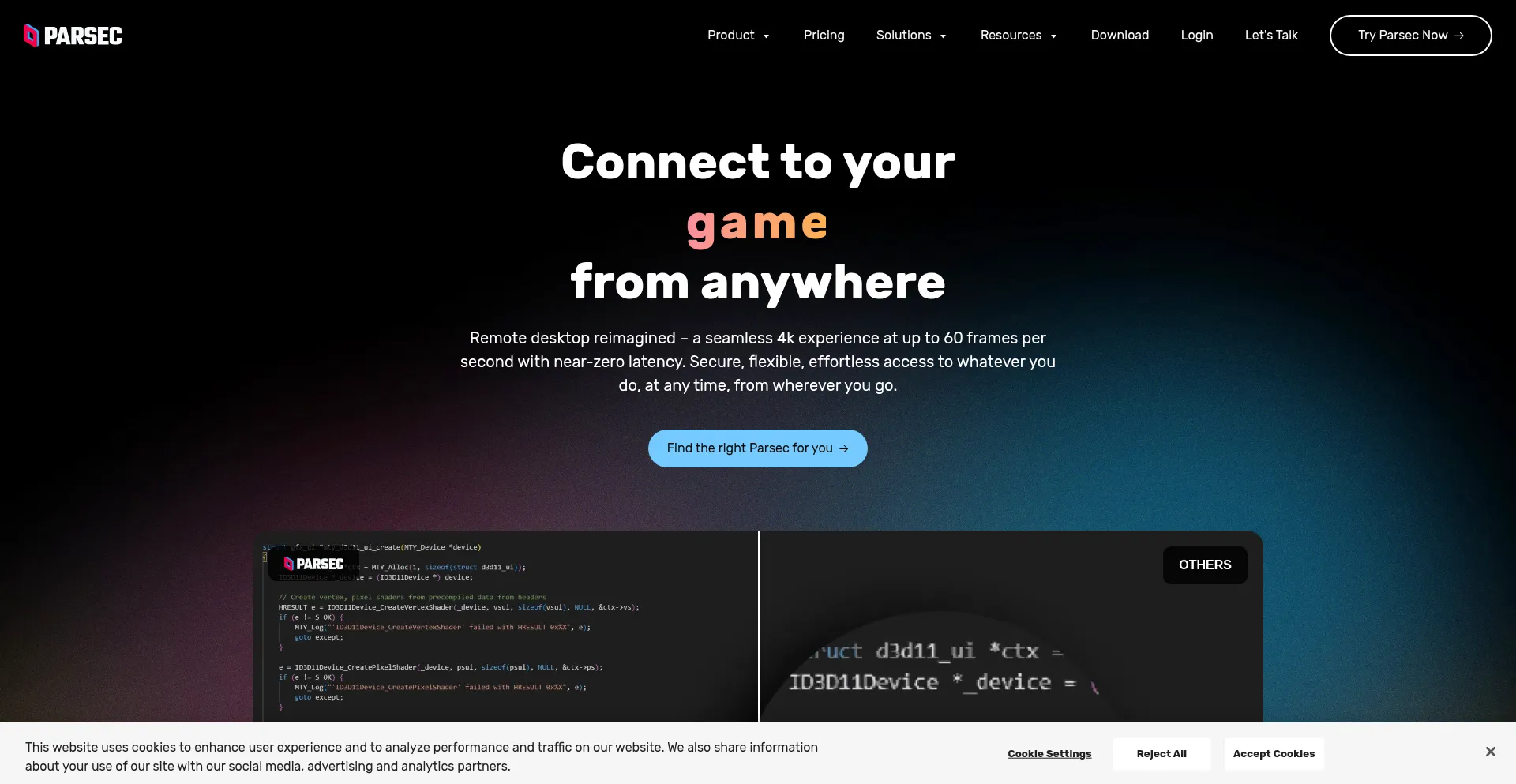 Parsec is a remote desktop you'll actually love. Connect to work, games, or projects wherever you are, whenever you want.