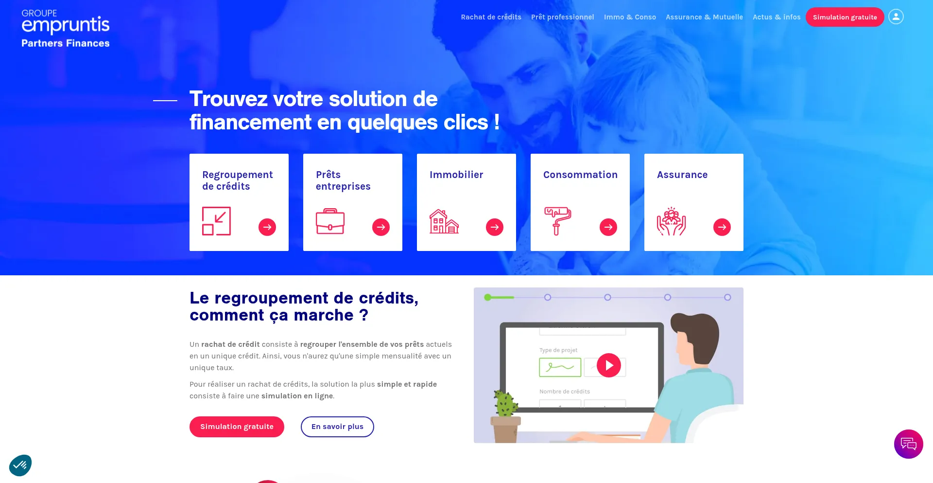 Avec le rachat de crédit, réduisez vos mensualités jusqu'à -60%. Simulez gratuitement et rapidement votre regroupement de prêt avec Partners Finances.