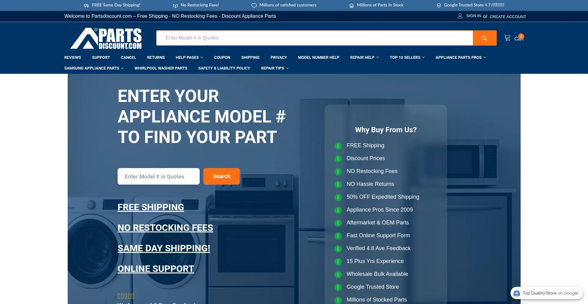 PartsDiscount.com | Discount Appliance Parts for All Brands – Free Shipping