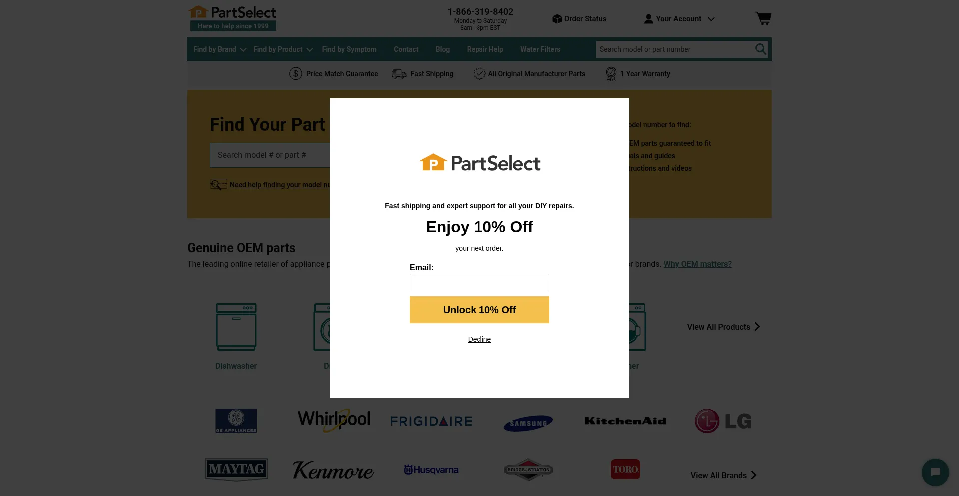 Shop the over 2 million genuine OEM appliance parts that PartSelect offers. DIY repair made easy with fast shipping, model diagrams, videos, and repair help.