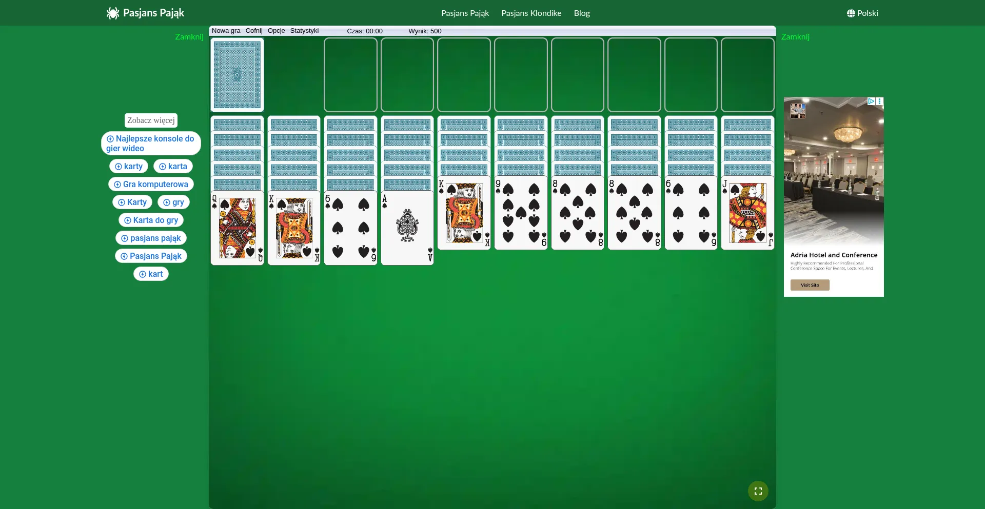 Pasjans Pająk Online – Zagraj Teraz za Darmo