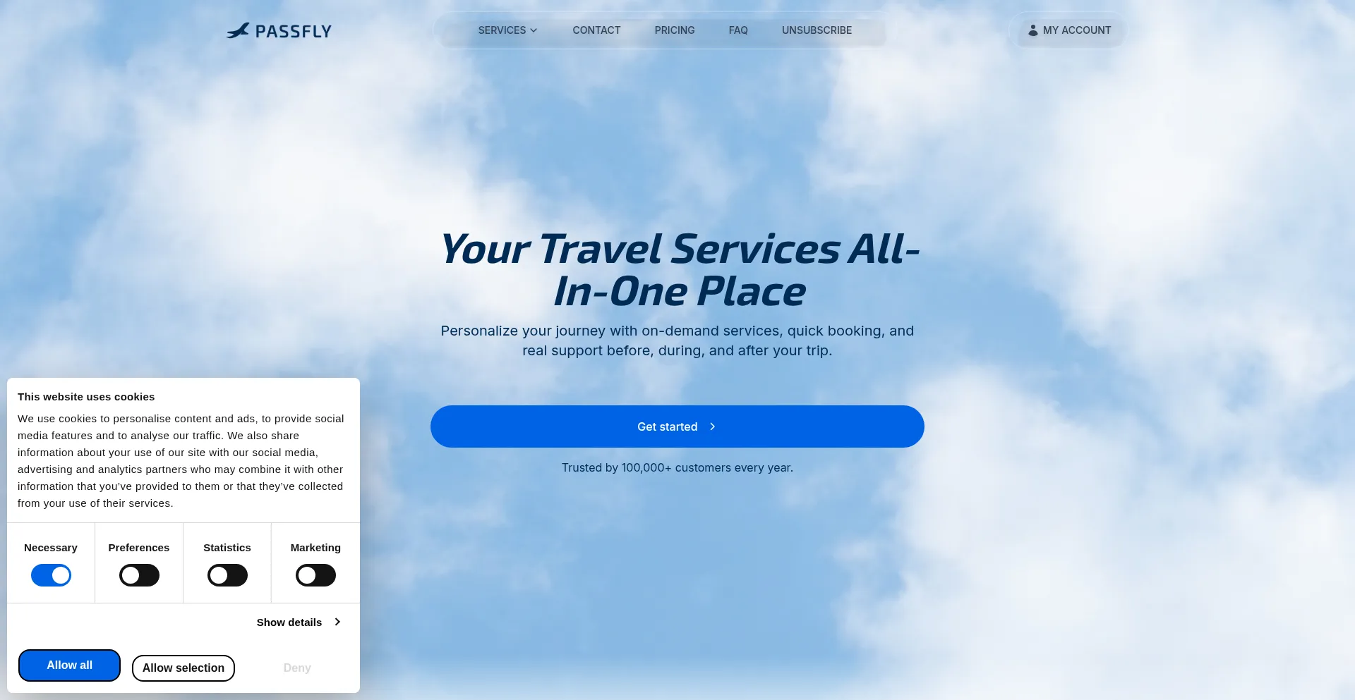 该网站实现符合GDPR或CCPA等隐私法规的cookie同意机制。这表明 passfly.co 遵守数据保护标准并为用户提供对个人数据收集实践的控制。