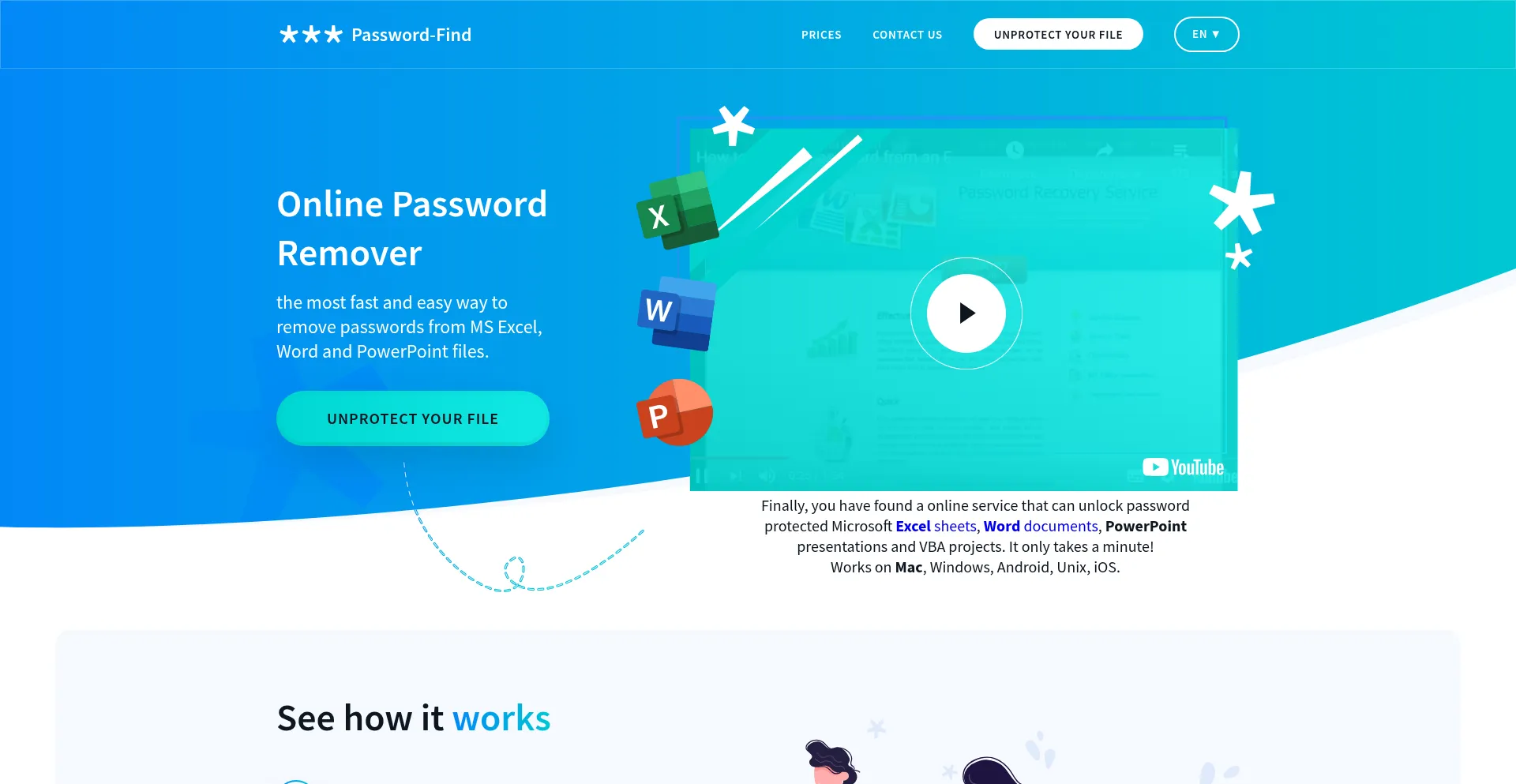 the most fast and easy way to remove passwords from MS Excel, Word and PowerPoint files.