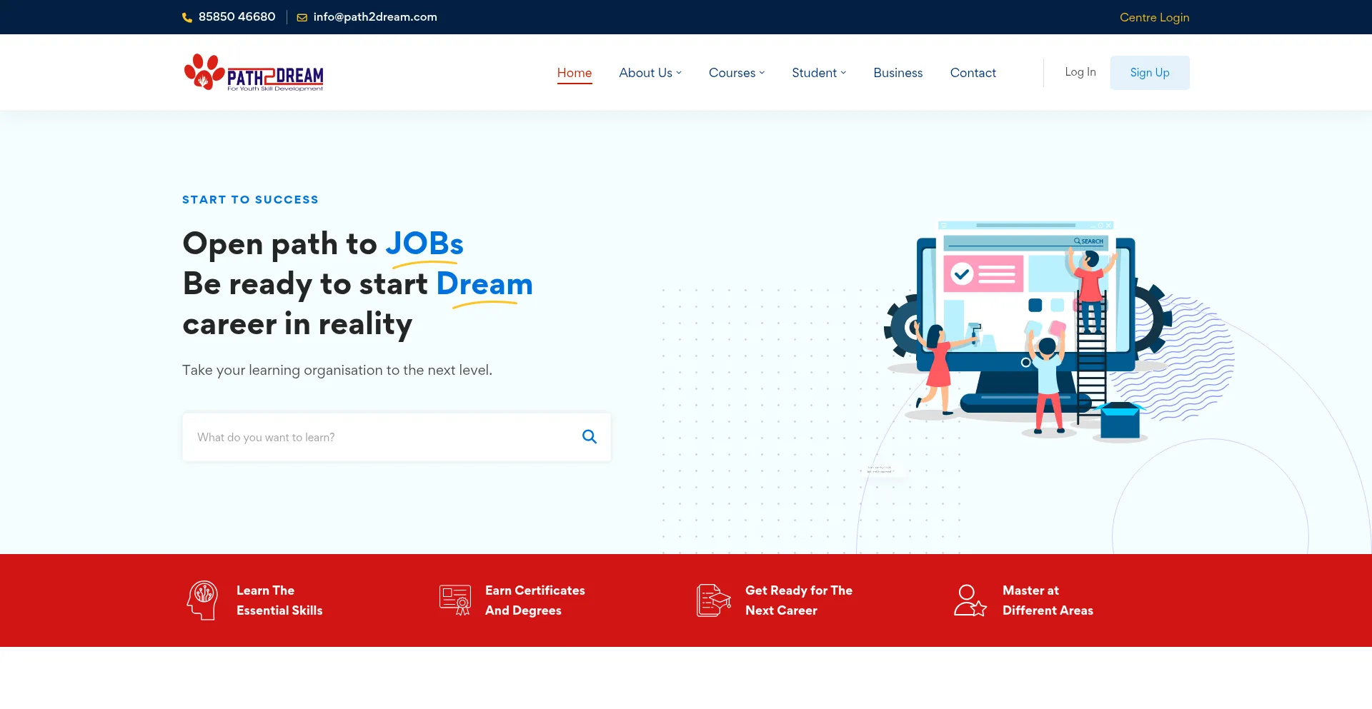 该网站实现数据收集表单,请求个人信息,包括姓名、电子邮件地址、电话号码或其他敏感详细信息。用户应验证 path2dream.com 的合法性并在提交个人数据前查看隐私政策。