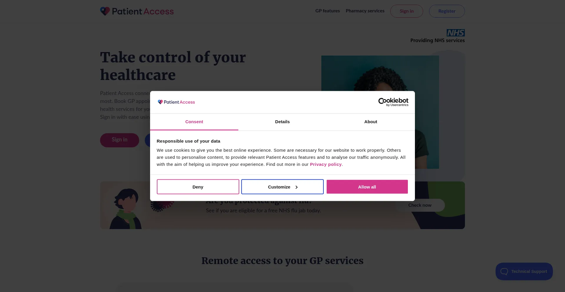 Book GP and pharmacy appointments, order online prescriptions and view your medical record at your convenience. Patient Access, in partnership with NHS.