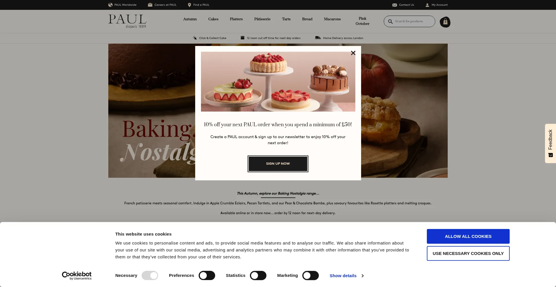 该网站实现符合GDPR或CCPA等隐私法规的cookie同意机制。这表明 paul-uk.com 遵守数据保护标准并为用户提供对个人数据收集实践的控制。