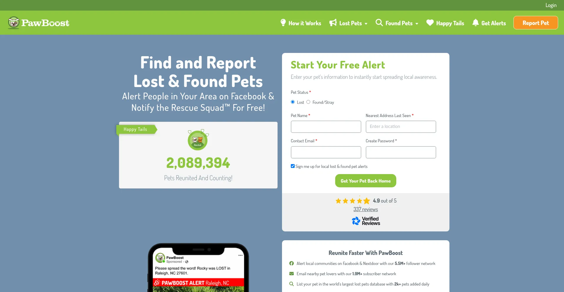 Find Your Lost Pet And Alert Local People on Facebook & Notify the Rescue Squad™, For Free!