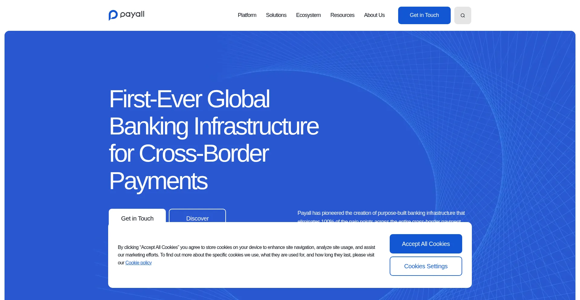 该网站实现符合GDPR或CCPA等隐私法规的cookie同意机制。这表明 payall.com 遵守数据保护标准并为用户提供对个人数据收集实践的控制。