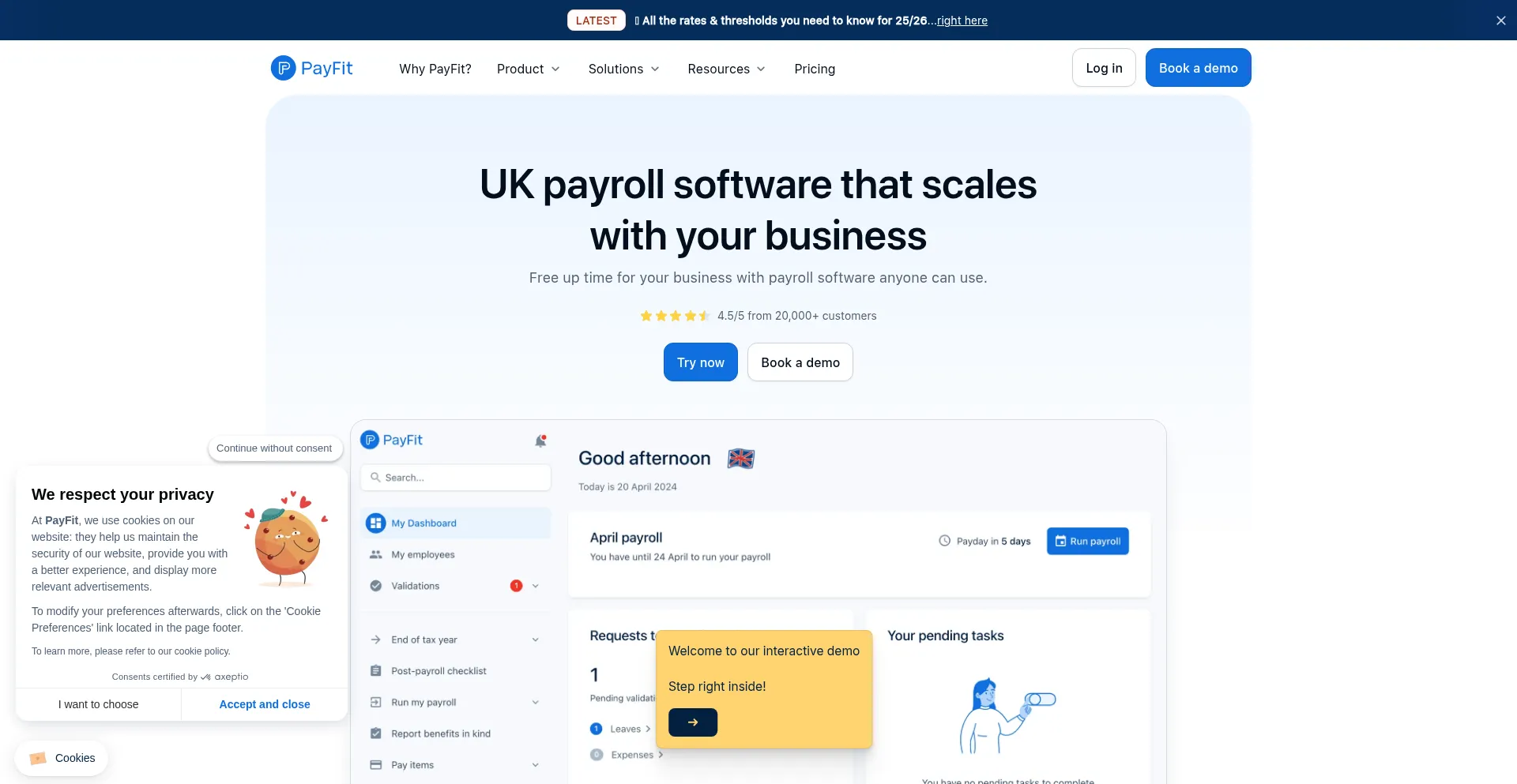 该网站实现符合GDPR或CCPA等隐私法规的cookie同意机制。这表明 payfit.com 遵守数据保护标准并为用户提供对个人数据收集实践的控制。