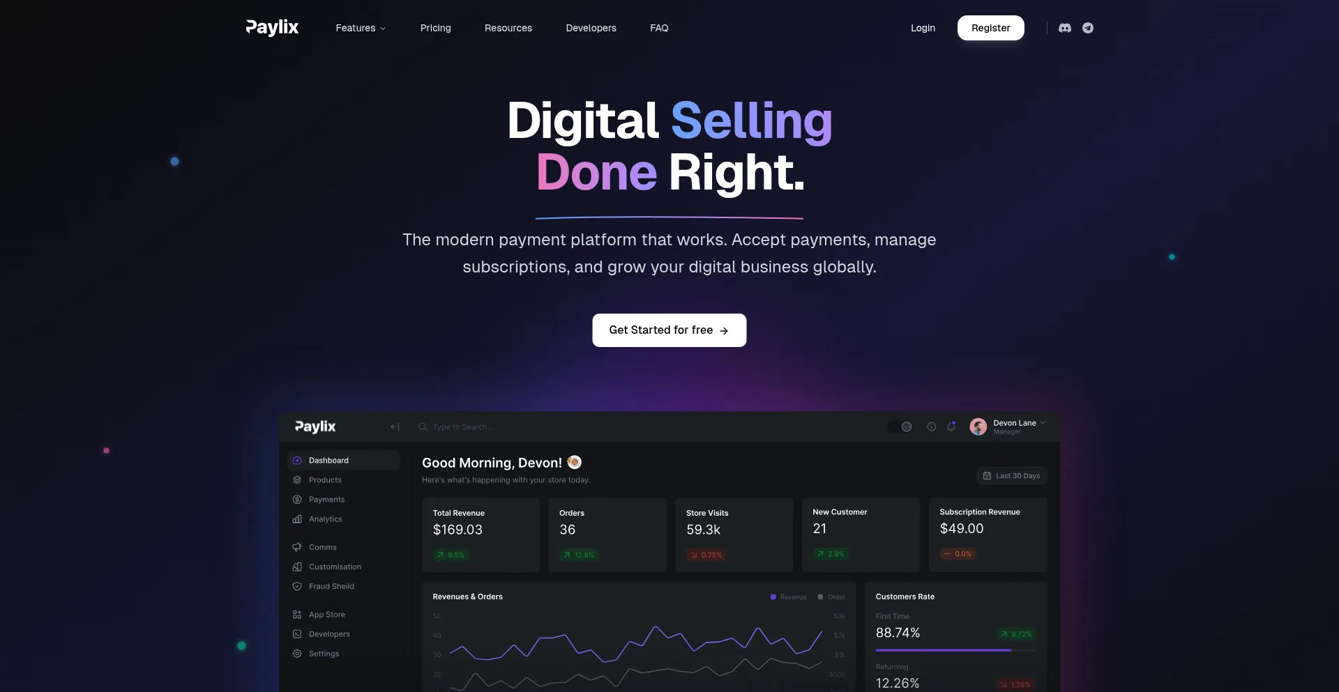 The modern digital selling platform that works. Paylix lets you accept payments, manage subscriptions and grow your digital business globally.