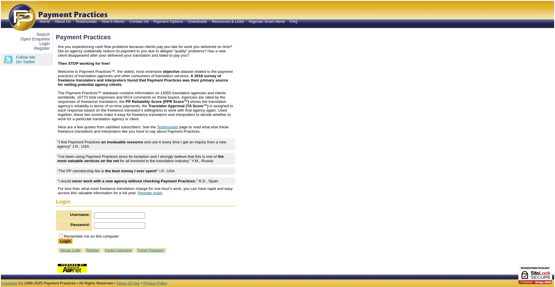 Online database of payment practices of translation agencies. Provides freelance translators and interpreters with information about the payment behavior of translation agencies.