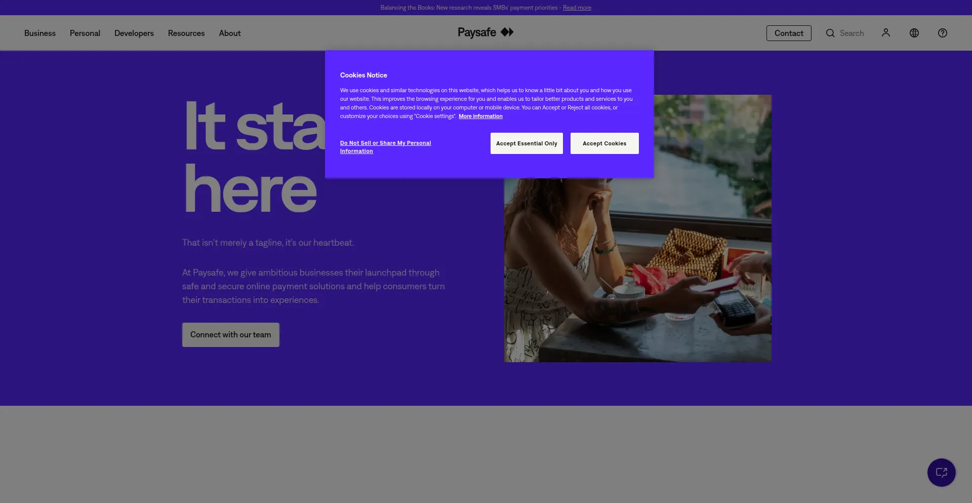 该网站实现符合GDPR或CCPA等隐私法规的cookie同意机制。这表明 paysafe.com 遵守数据保护标准并为用户提供对个人数据收集实践的控制。
