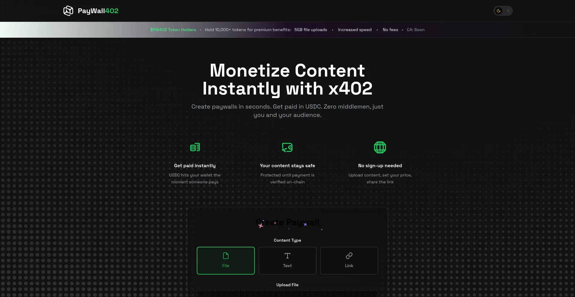 Create paywalls in seconds. Get paid in USDC with zero middlemen using the x402 protocol on Solana.