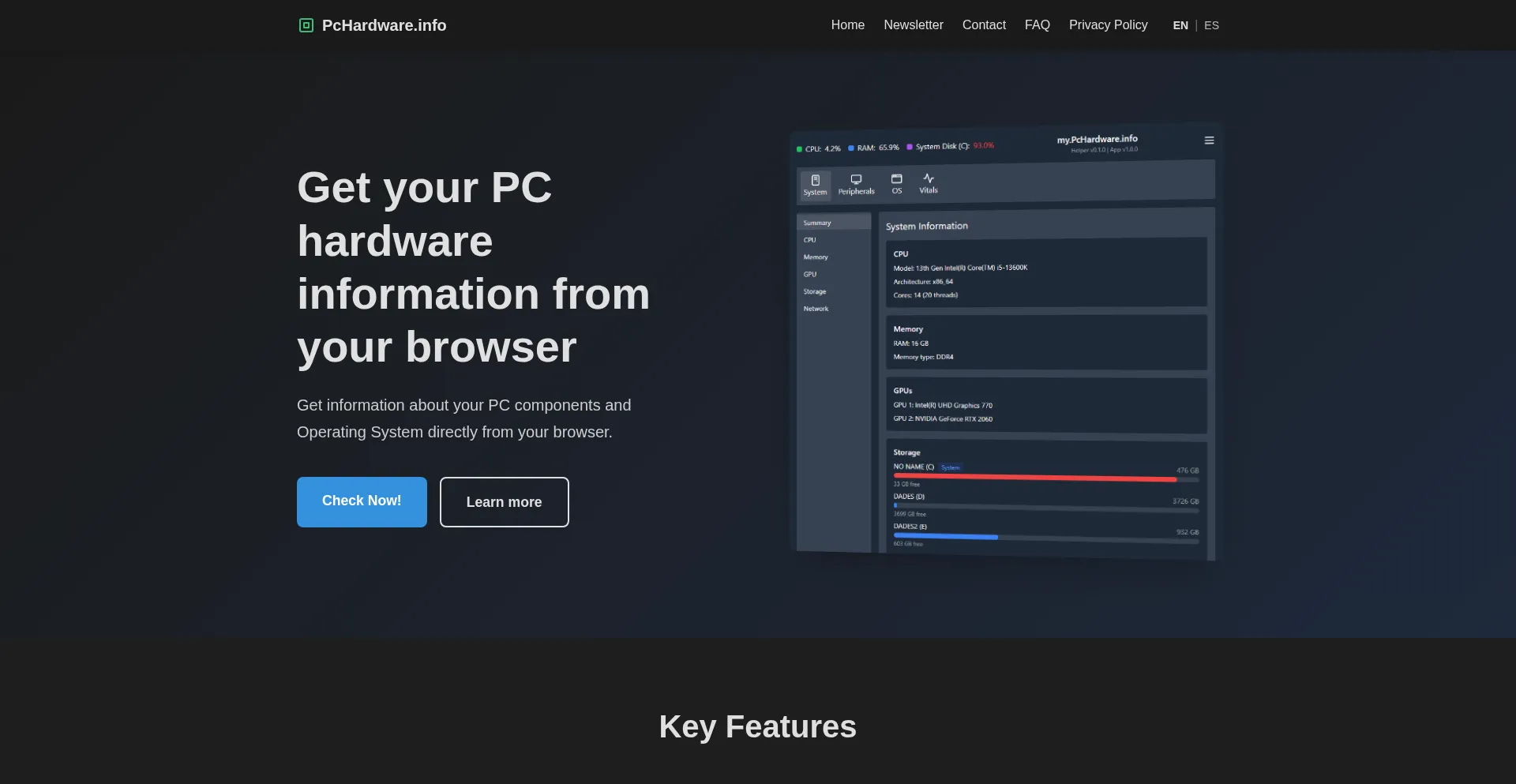 Get information about your PC components and Operating System directly from your browser.