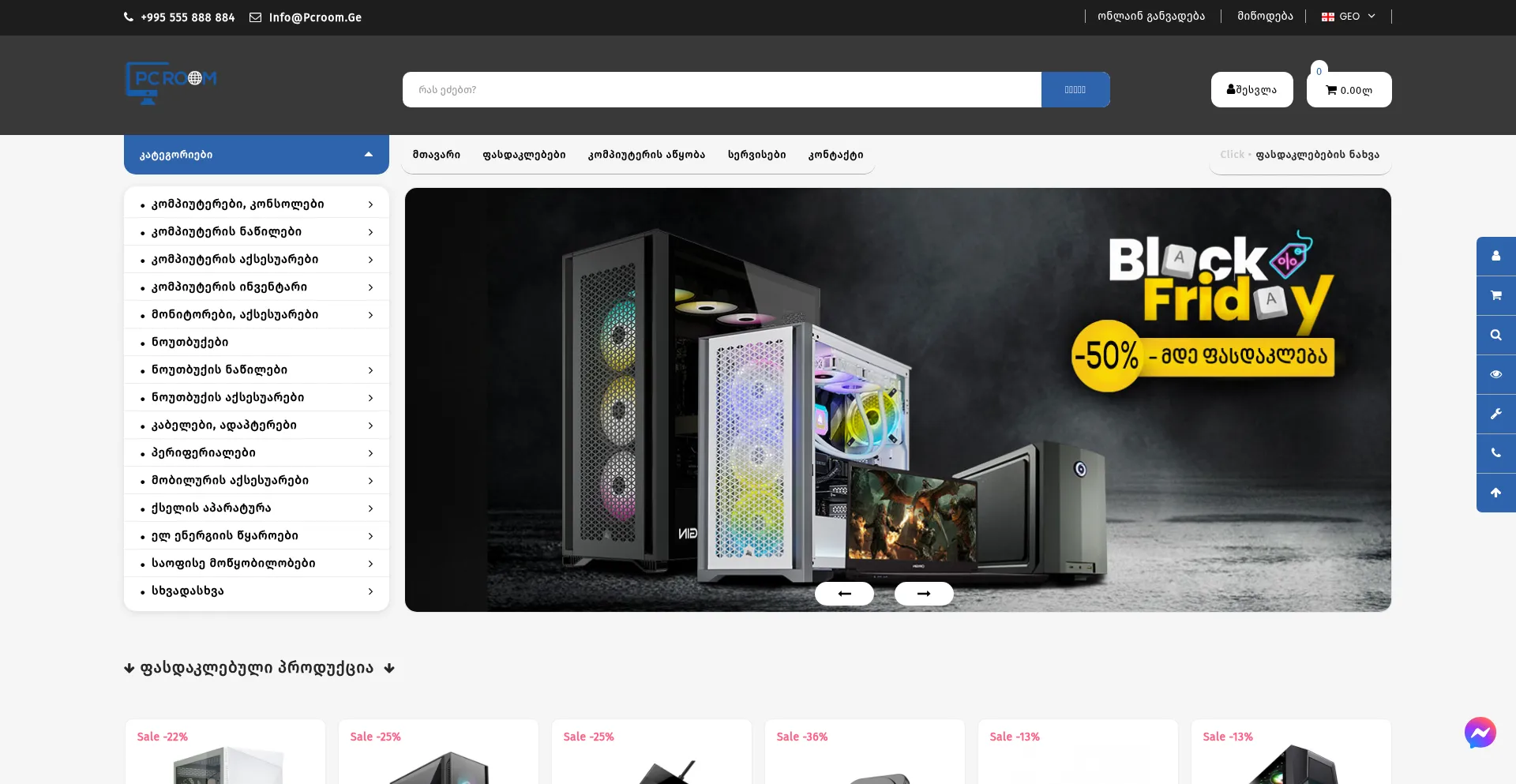 分析表明 pcroom.ge 作为电子商务平台运营,促进商品或服务的在线交易。该网站实现了购物车功能、支付处理系统和产品目录功能,这些是商业零售运营的典型特征。