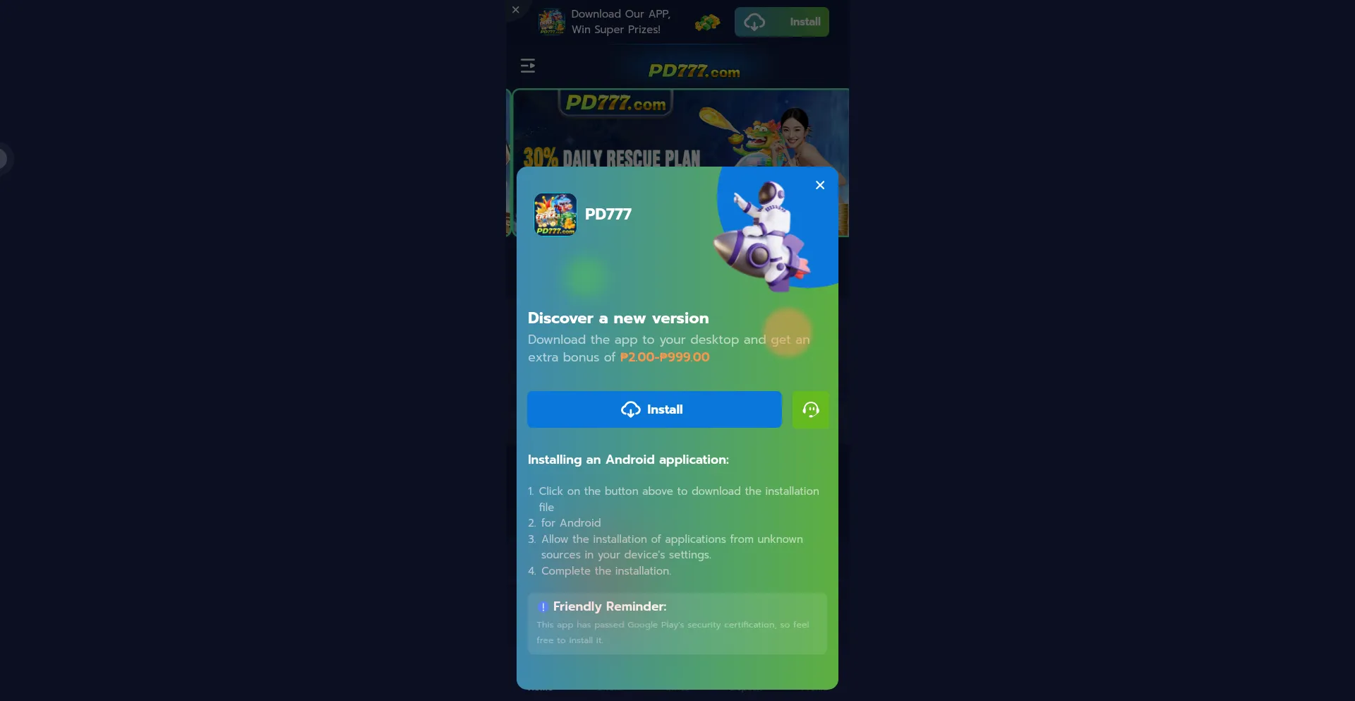 网站 pd777.com 被配置为一个带有移动应用功能的网络应用。用户可以直接将该网站安装到设备的桌面上,以快速访问并享受类似移动应用的体验。