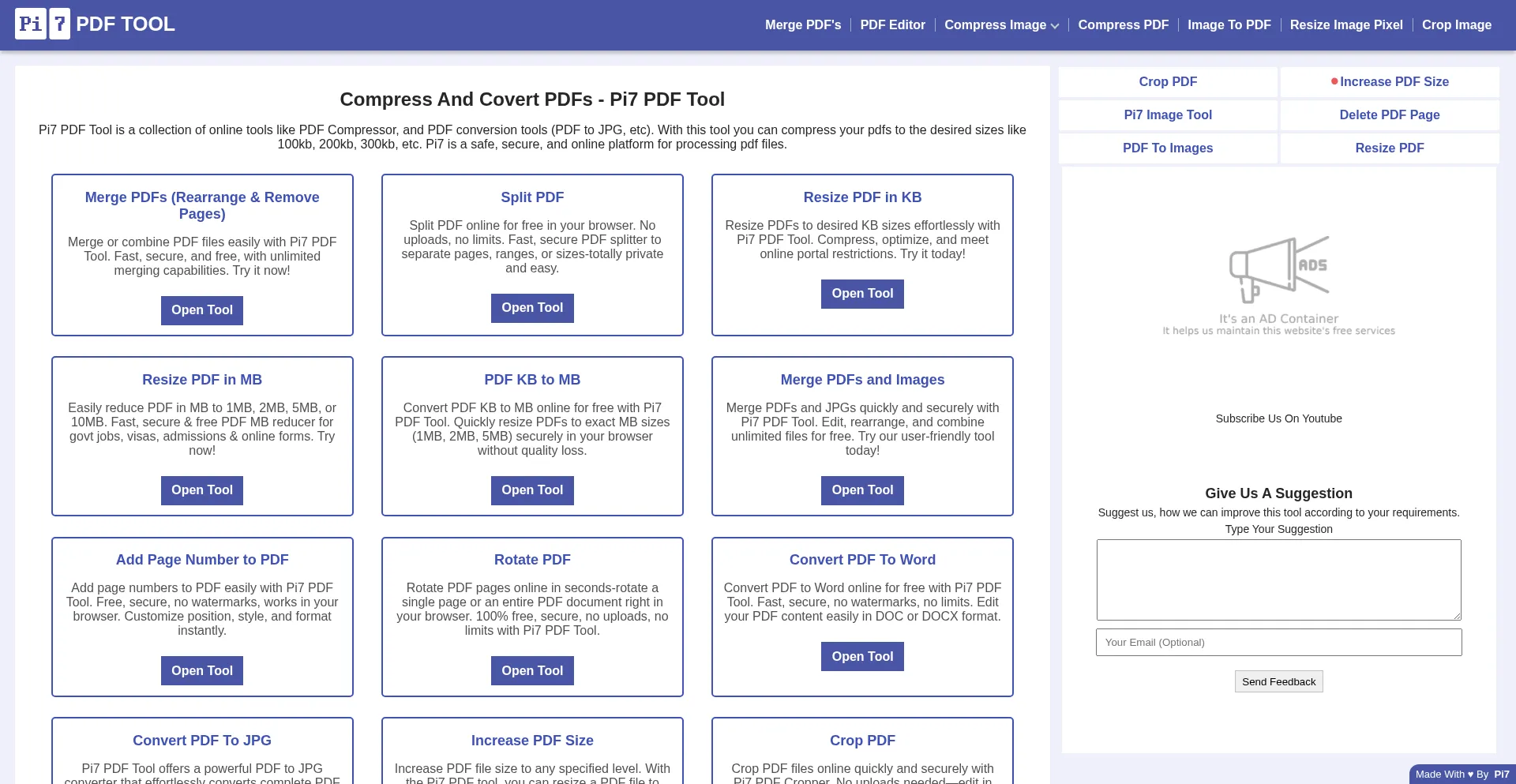 With Pi7 PDF Tool you can compress your pdfs to the desired sizes like 100kb, 200kb, 300kb, etc.