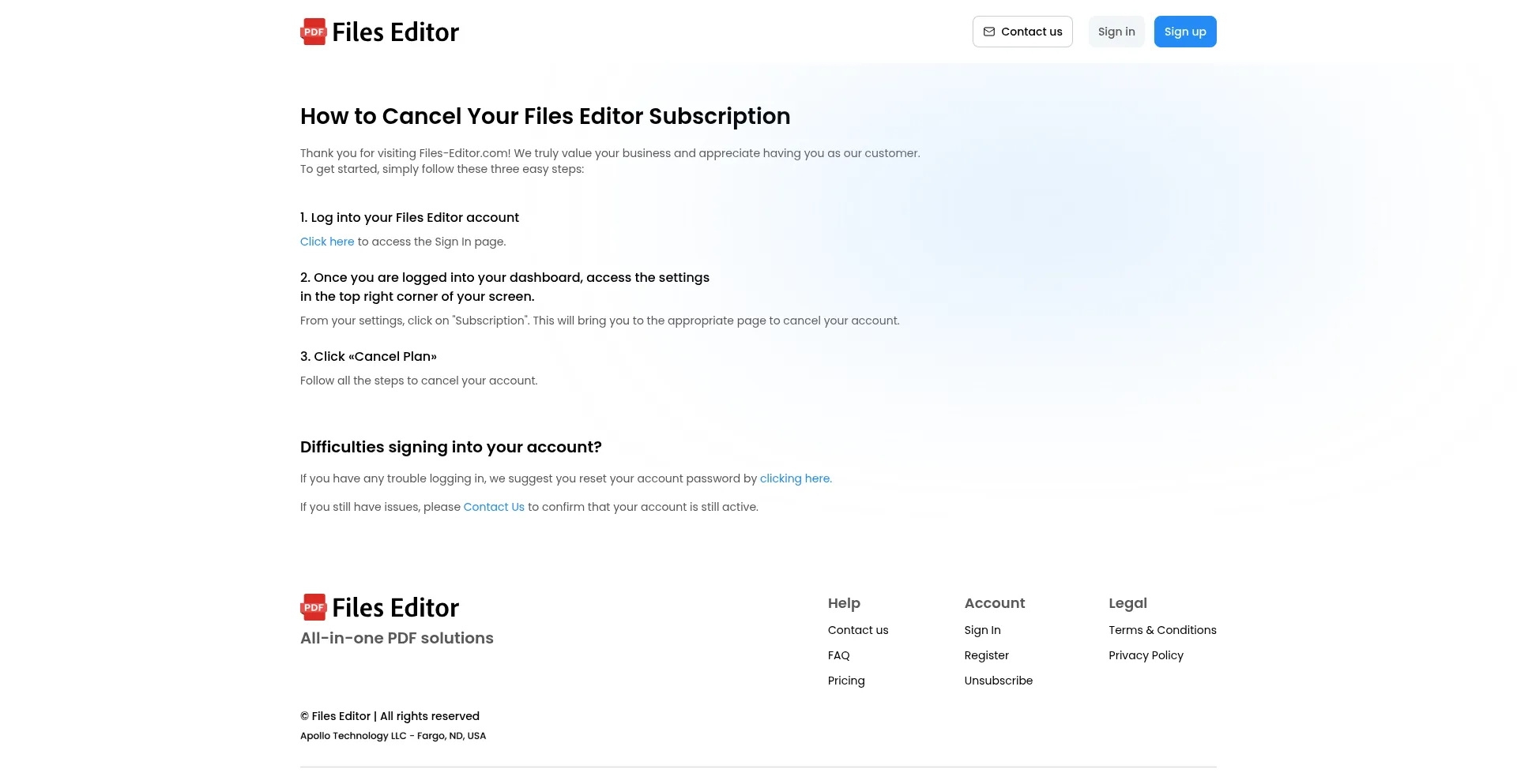 Unsubscribe | Files Editor