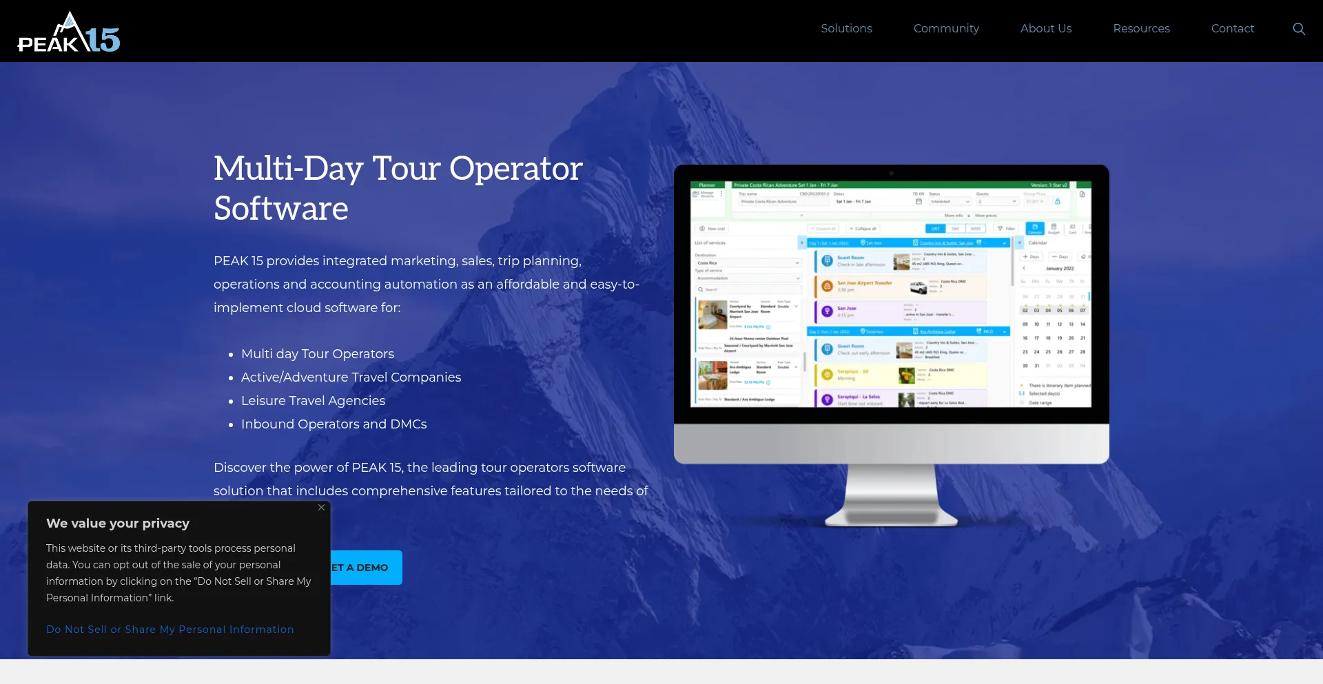 Streamline operations, increase revenue and enhance guest experiences with PEAK 15, the comprehensive multi-day tour operator software for all types of multi-day travel companies.