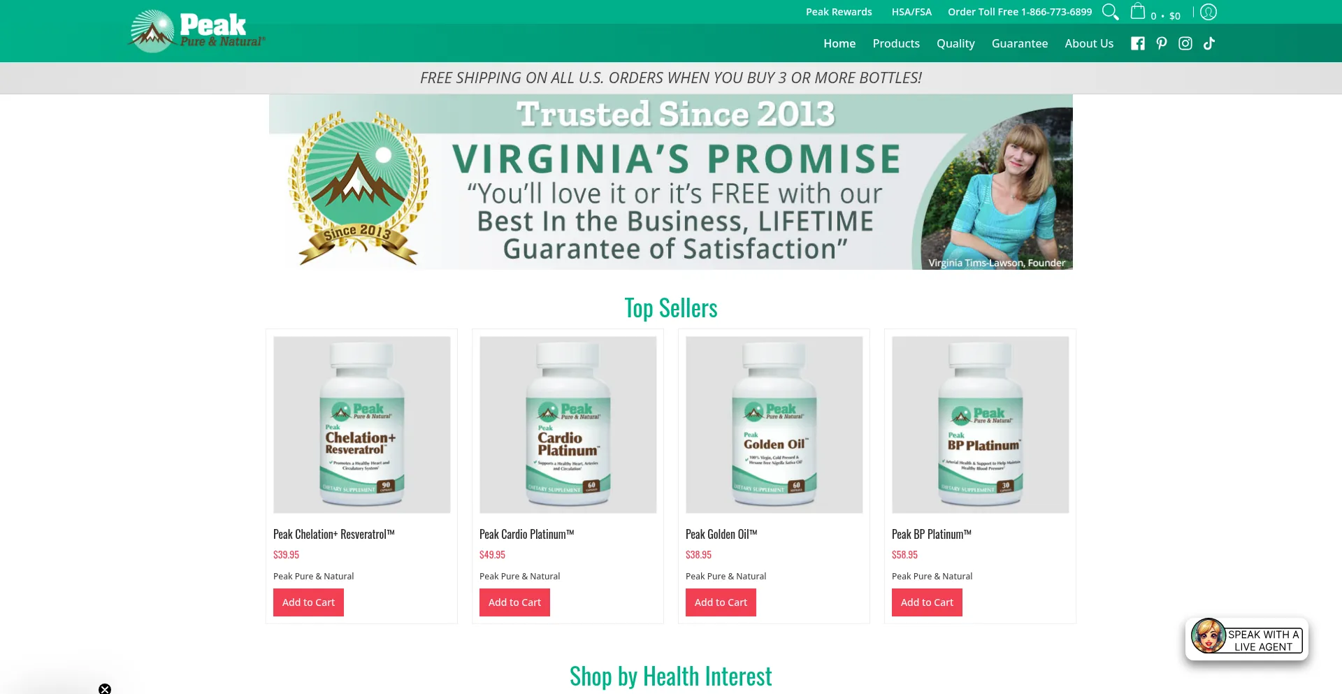 网站上存在社交媒体链接表明 peaknatural.com 在社交媒体上维护官方账户,这是可信度和参与度的积极信号。