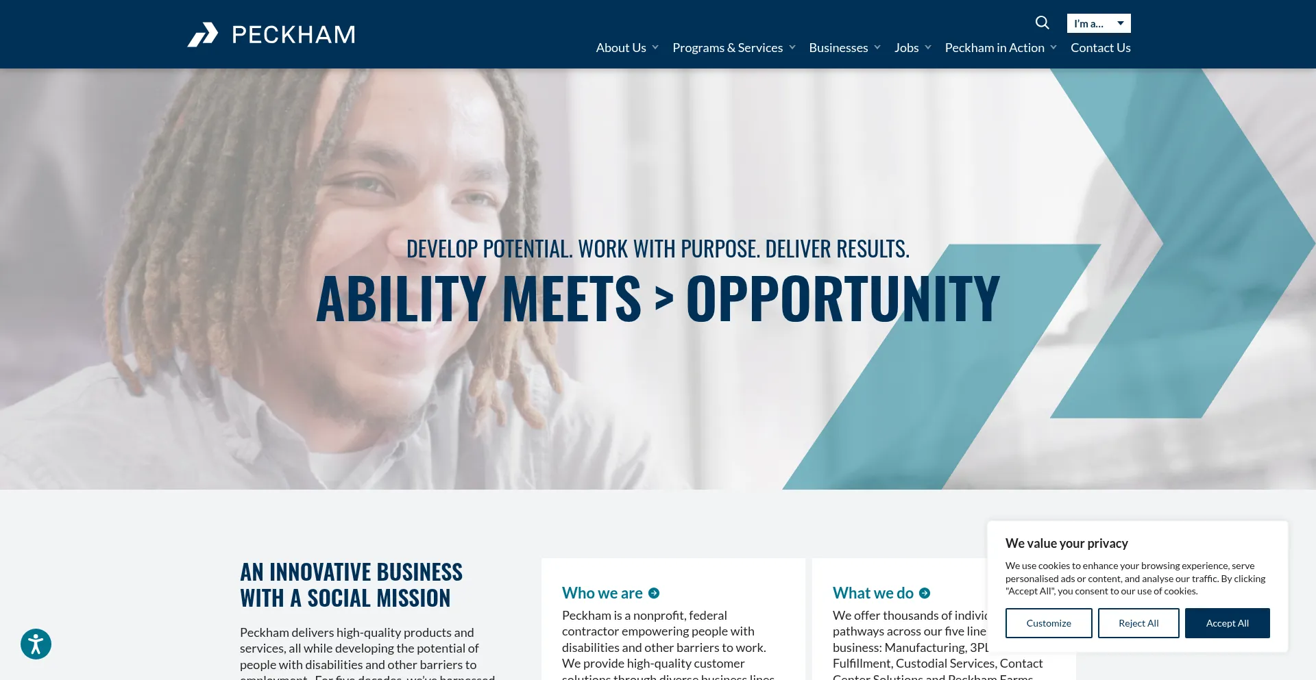 While developing the potential of people with disabilities & other barriers to employment Peckham delivers world-class, high-quality products and services.