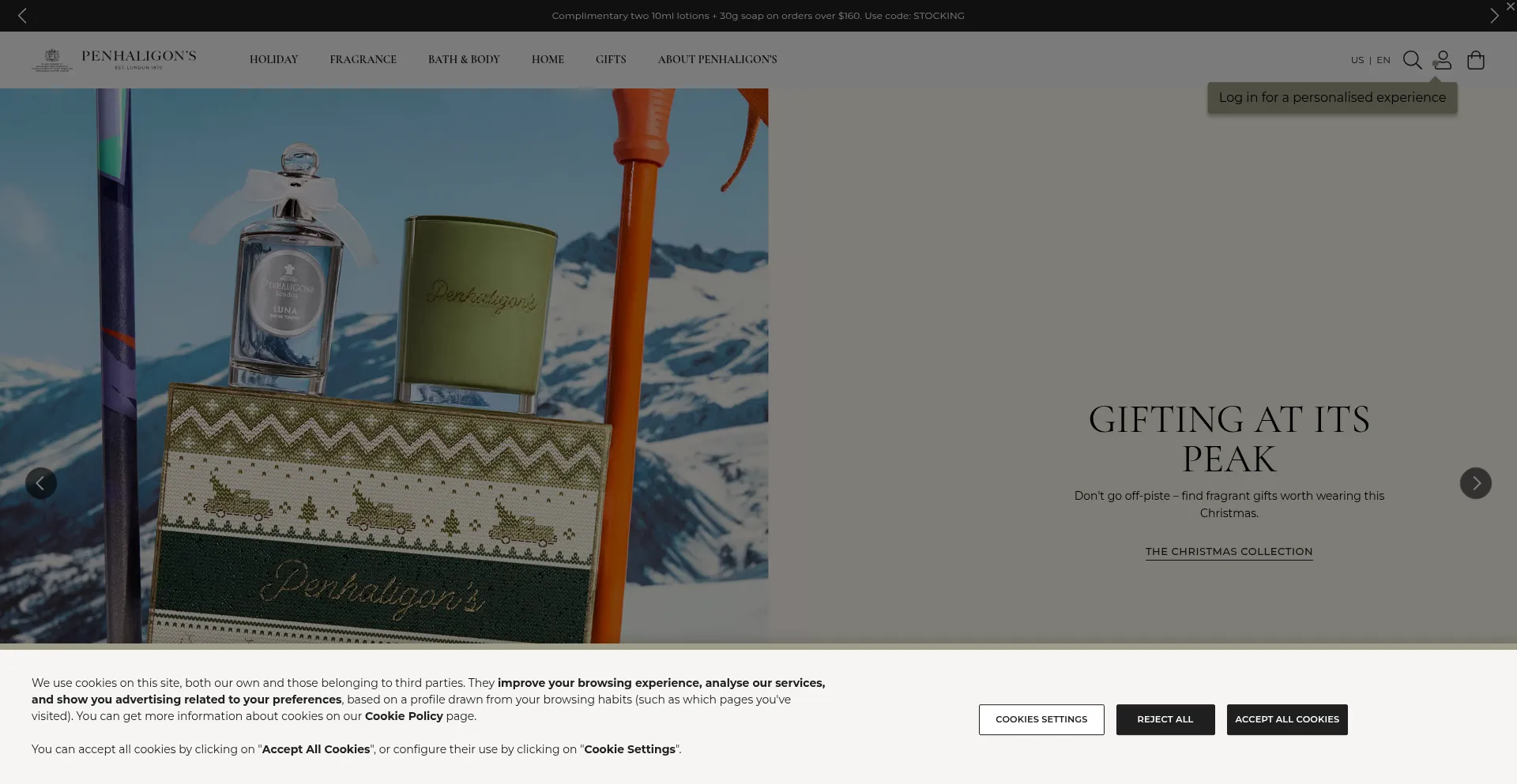 该网站实现符合GDPR或CCPA等隐私法规的cookie同意机制。这表明 penhaligons.com 遵守数据保护标准并为用户提供对个人数据收集实践的控制。