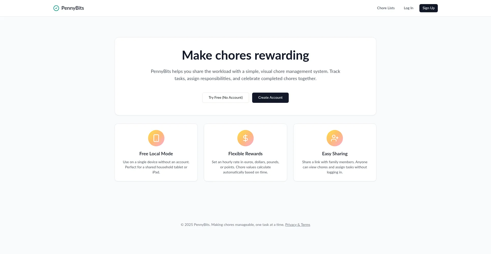 PennyBits helps you share the workload with a simple, visual chore management system.