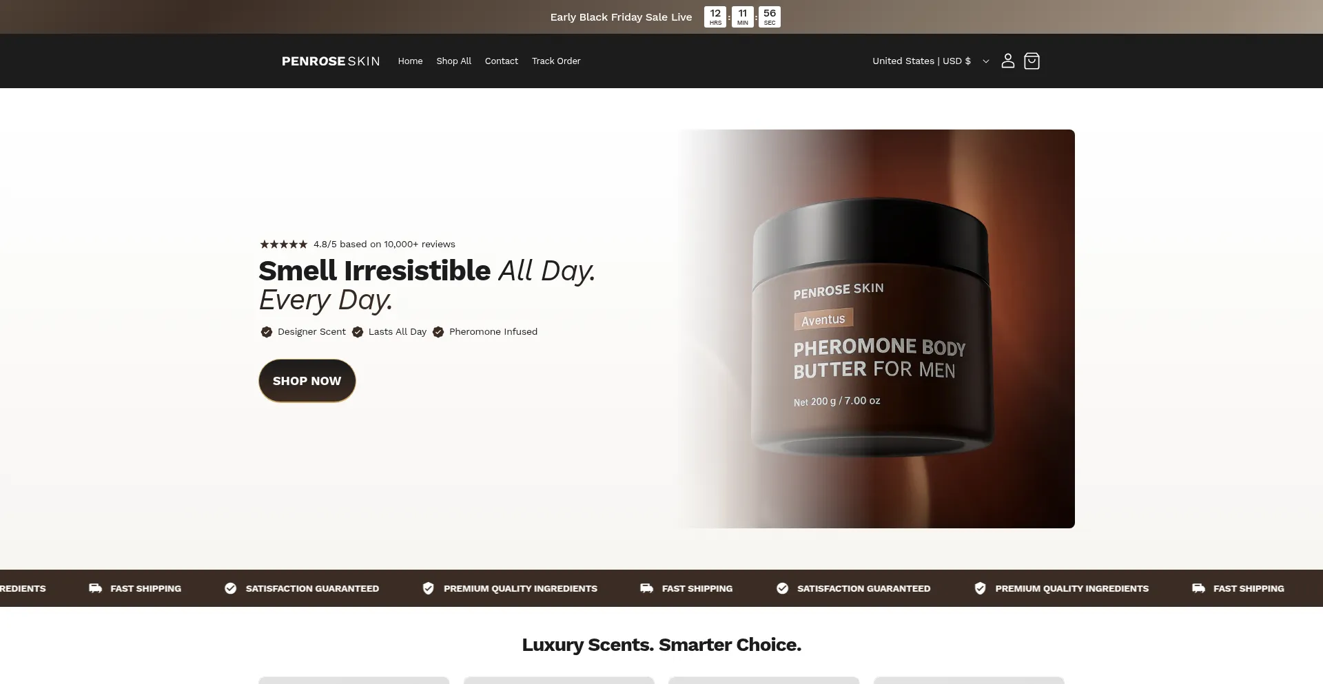 Discover Penrose Skin’s luxury pheromone-infused body butters for men. Inspired by iconic fragrances, our butters are long-lasting, non-greasy, and made with premium ingredien...