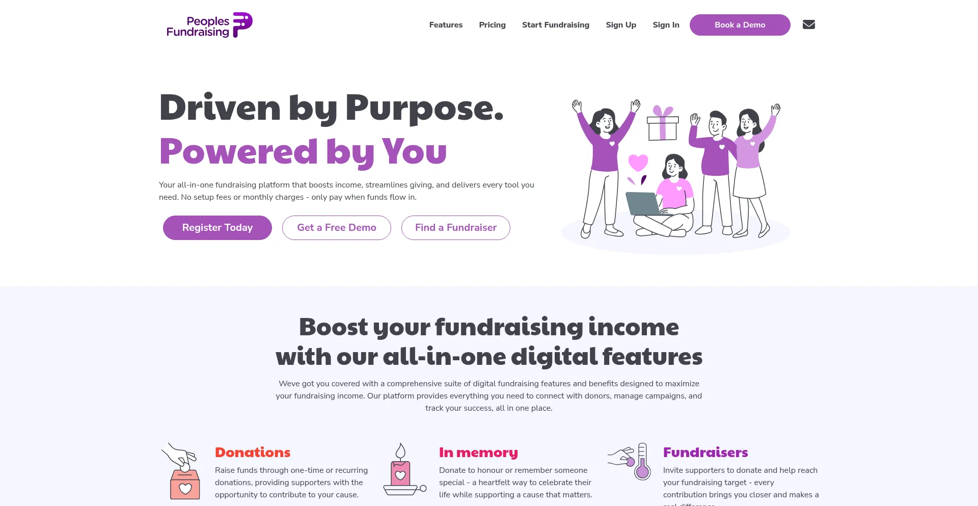 网站上存在社交媒体链接表明 peoplesfundraising.com 在社交媒体上维护官方账户,这是可信度和参与度的积极信号。